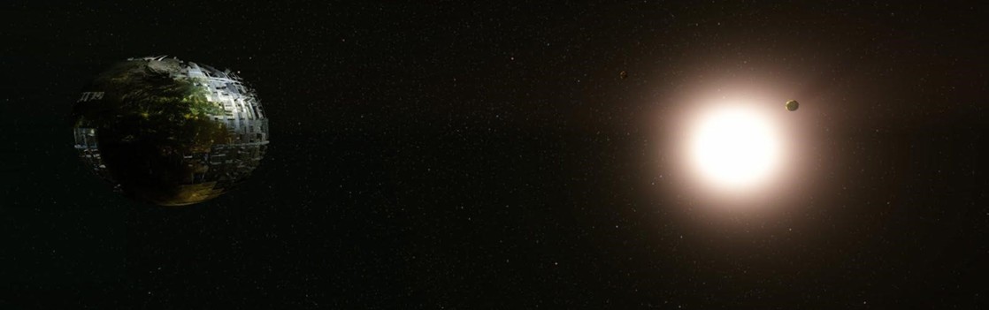 Die orbitale Station ist das Nervenzentrum der Synthworld-Baustelle. Sie bietet den Wissenschaftlern und Ingenieuren des Projekts ein Zuhause und ist ebenso der Anlaufhafen für Versorgungsgüter und Ressourcen, die benötigt werden, um den Planeten zu bauen und die Besatzung bei Laune zu halten.